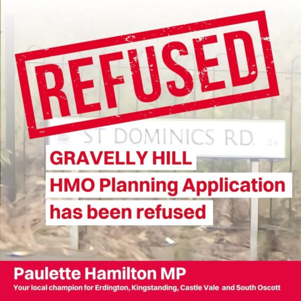 SUCCESS: Gravelly Hill HMO Planning Application REFUSED.