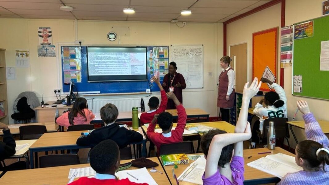 Pupils quiz Paulette at SS. Mary and John’s Catholic Primary School
